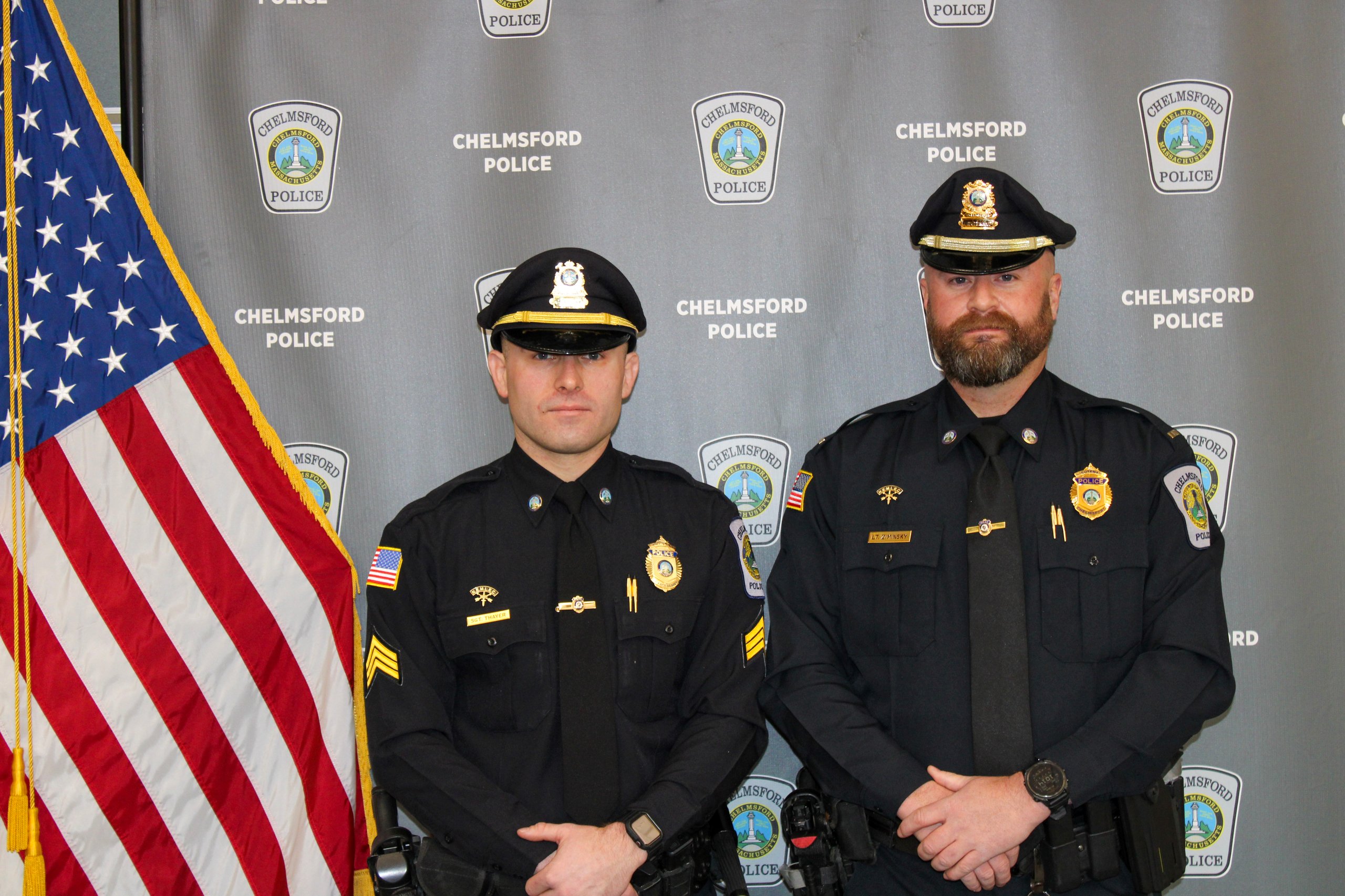 The Chelmsford Police Department congratulates Lieutenant Ziminsky and Sergeant Thayer on their well-earned promotions and thanks them for their continued service to the community.